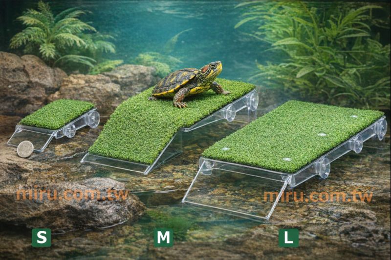 1. 仿真水草,模擬自然環境,方便烏龜攀爬,符合造景需求 2. 內含吸盤可穩固的吸附於缸壁上,水陸分離讓烏龜休憩、曬背 3. 爬台面積大,可搭配UV燈,有利於促進烏龜健康與甲殼的成長 4. 一體成型設計,安裝清潔更方便,材質安全無毒耐用,