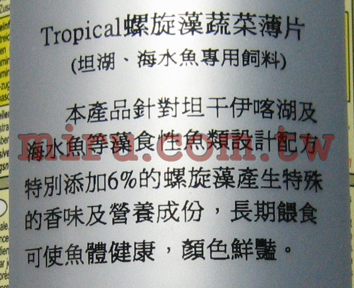 | Tropical德比克 螺旋藻蔬菜薄片(坦湖.海水魚專用飼料) | |