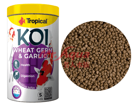 1.浮水性的金魚、錦鯉顆粒飼料。 2.天然的β-葡聚醣、大蒜和小麥胚芽可提升金魚、
