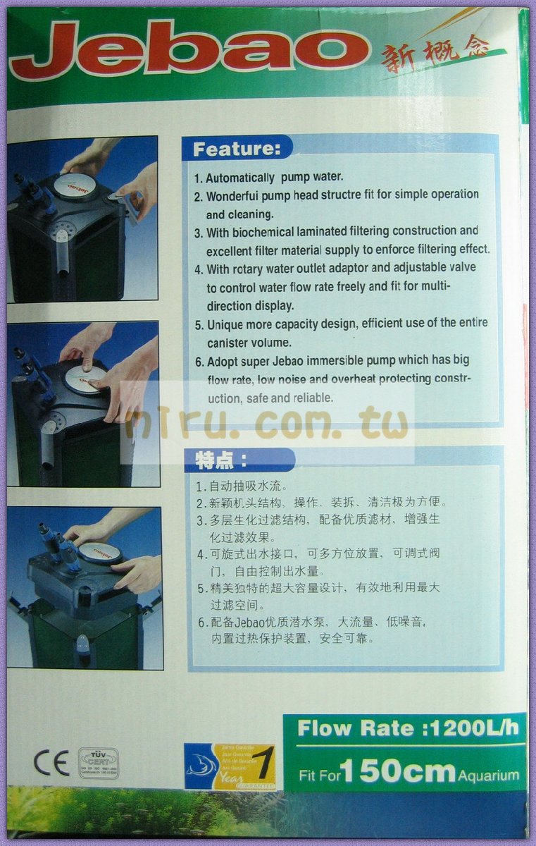 > 過濾設備,馬達 > 過濾器(圓桶、方桶)及相關零配件 > Jebo 915外置式圓桶、方桶過濾器1200L/H| kayoronkvb( 2012-02-28 16:12:37 ) | |