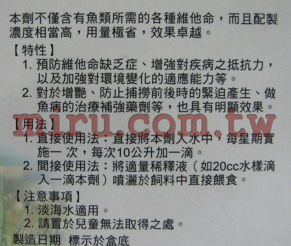 > 藥水,測試劑,水質處理,營養添加劑 > 營養添加劑> > 營養補充劑 > 翠湖TBS 高濃縮綜合維他命20ml(新包裝)
