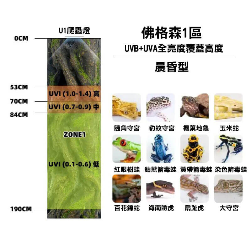 以滿足其生理需求 2. 可根據架設高度調整至建議所需的光照 3. 超薄型設計,兩種安裝方式,直接吸磁安裝在爬缸上方或