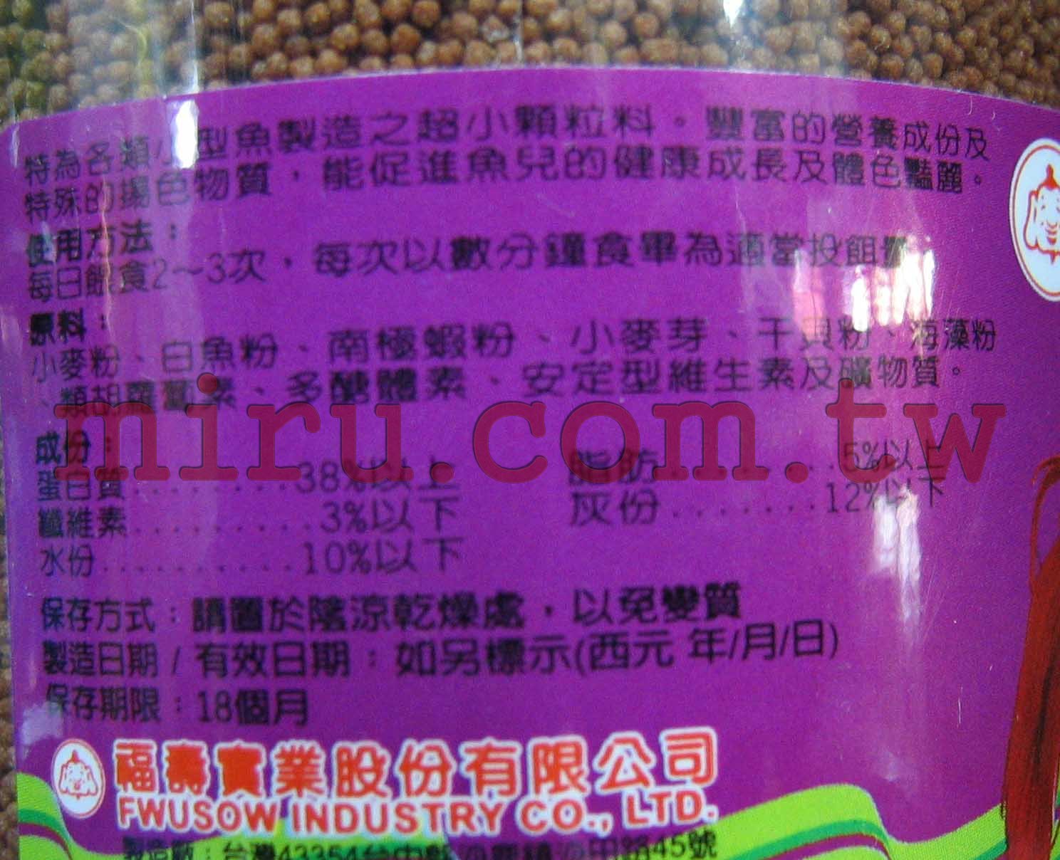 > 飼料,餵食設備 > 小型魚/孔雀魚飼料/燈科魚飼料/幼魚飼料 > 福壽 小型魚增艷飼料(600g)