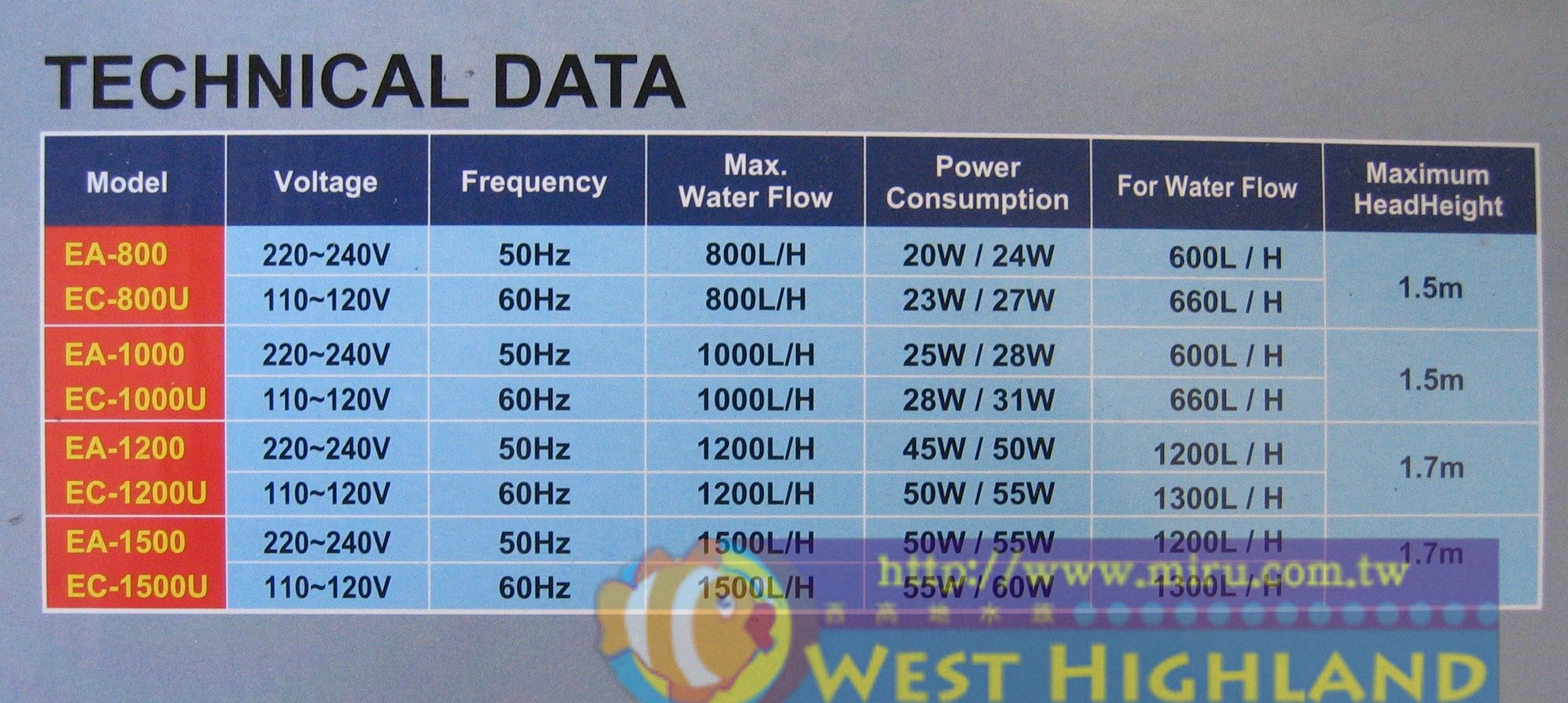 電壓:110V~120V 頻率:50Hz-60Hz 功率:40W 揚程:1.7m 流量:1500L/H
